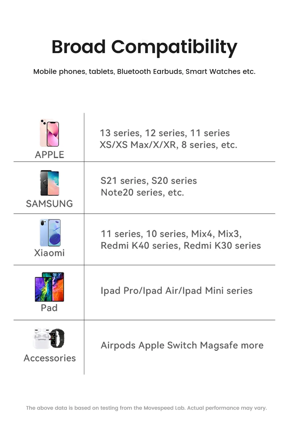 Mobile phones, tablets, Bluetooth Earbuds, smart watches etc.