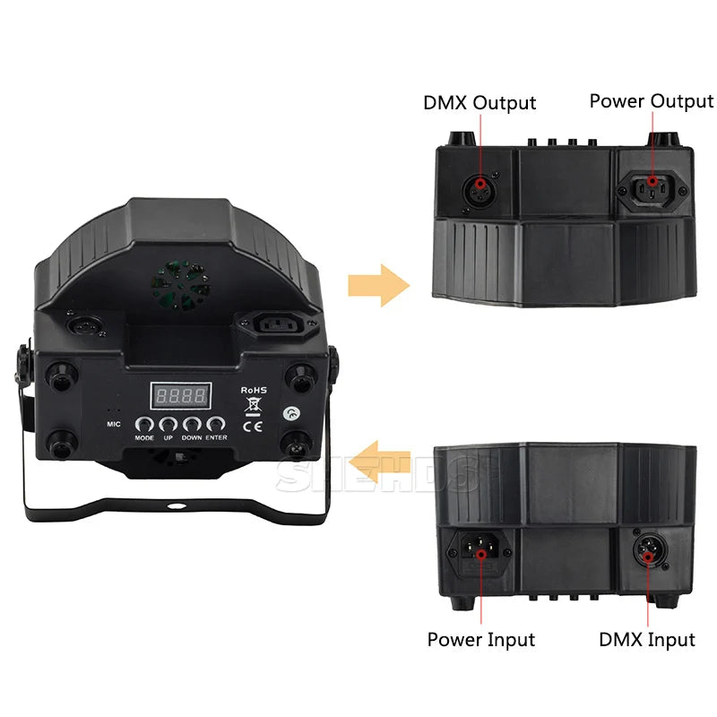 Διαθέτει DMX έλεγχο, αυτόματο mode, sound control και plug & play λειτουργία για άμεση χρήση.